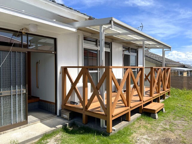 98坪の広い敷地に、ウッドデッキ付きのお家です*ˊᵕˋ)੭
