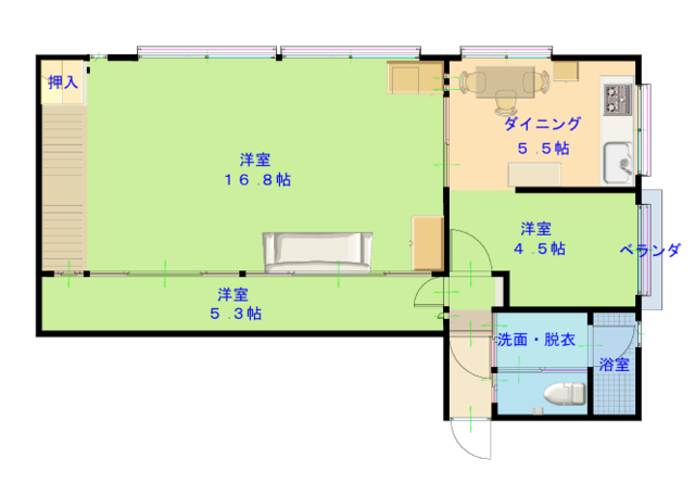 | 間取内容 | 洋室4.5帖/洋室16.8帖/洋室5.3帖/DK5.5帖 | ||
