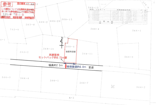 | 設備・条件 | 2項道路のため建物等の建築の際には道路中心線より2mのセットバックが必要です。 | ||